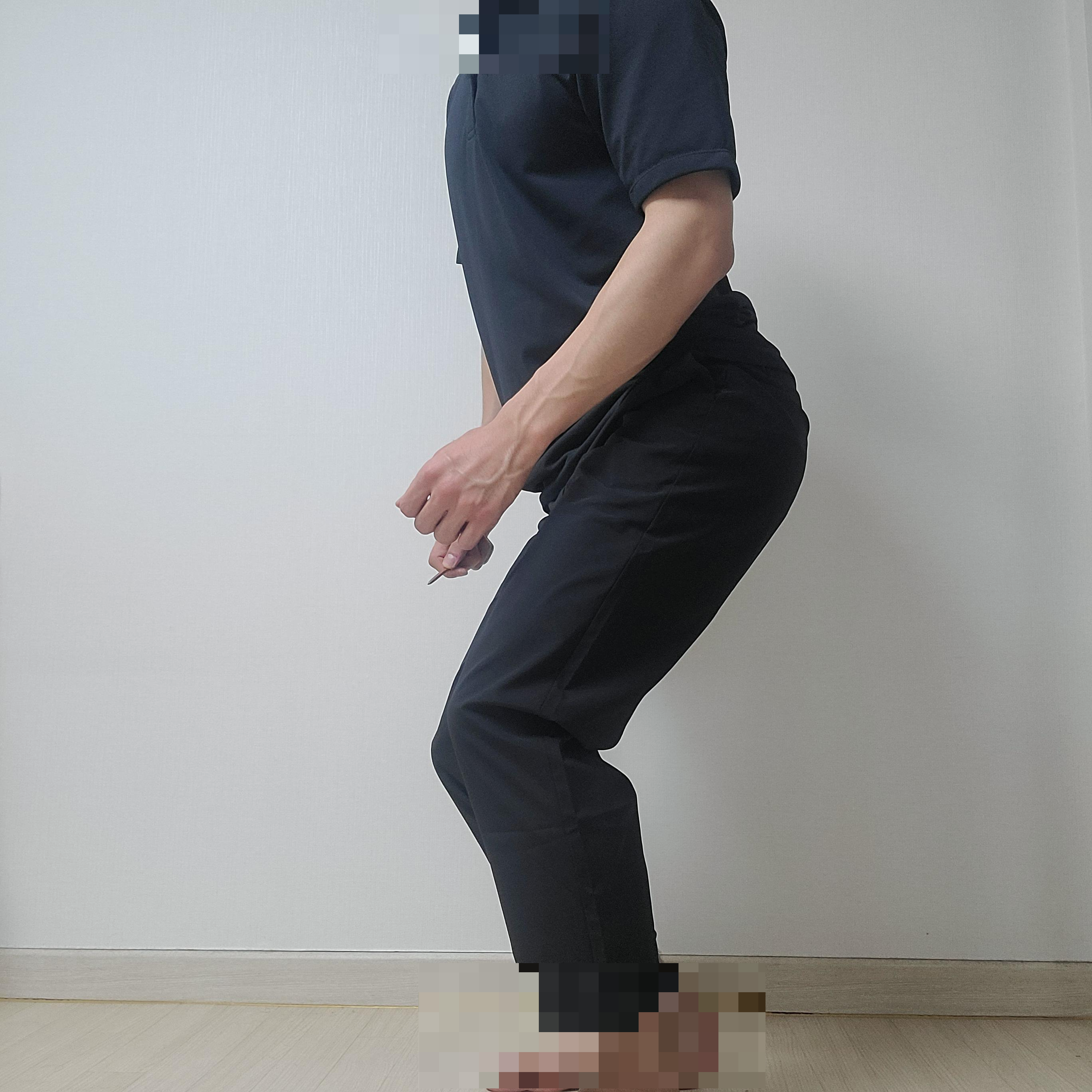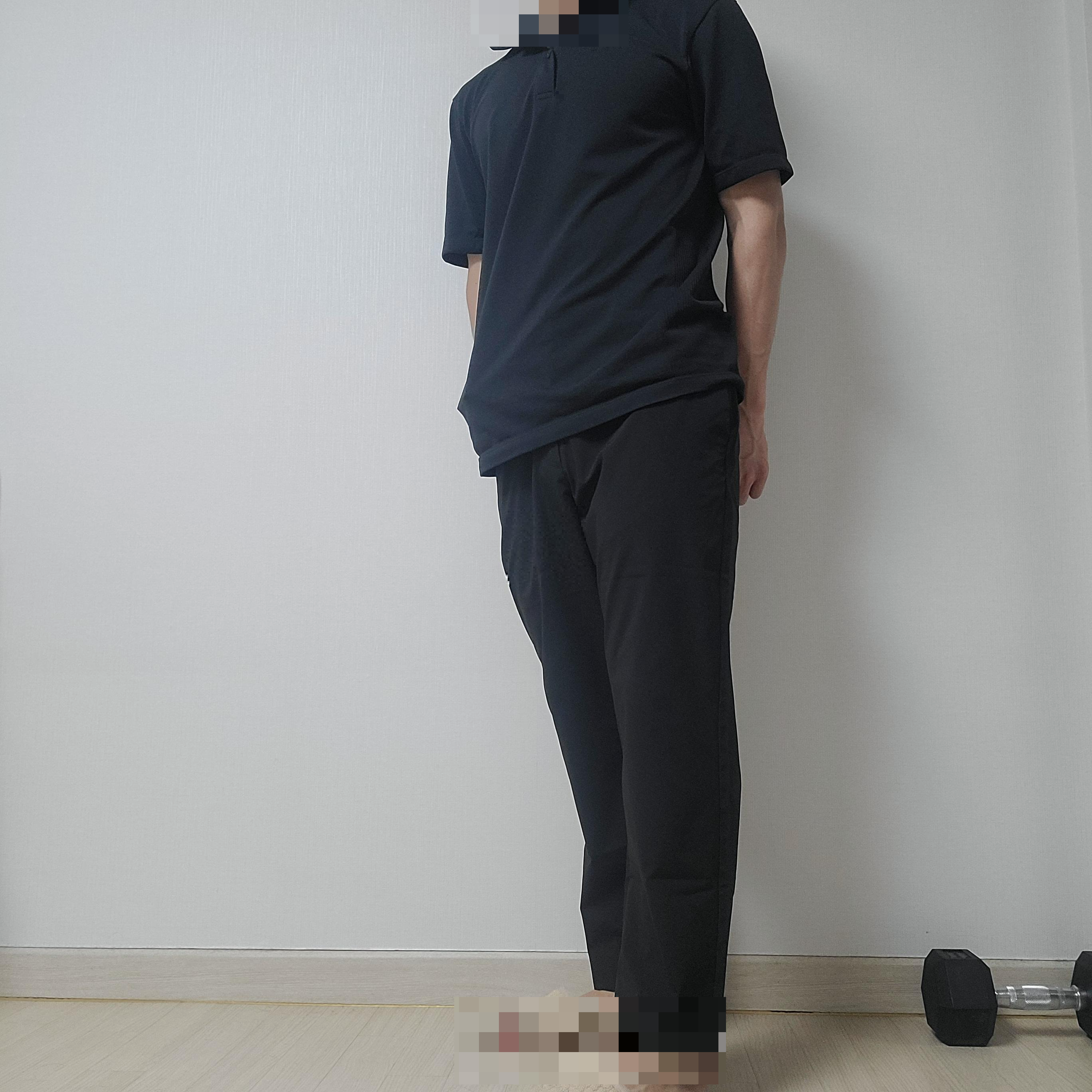 그냥 해보고 싶은 자세가 있어서 사진 찍는 김에 해봤다. 이런 자세를 할 만큼 바지가 편하기도 하다는 뜻이다.